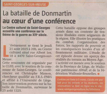 C’est le dimanche 15 juin qu’aura lieu notre Assemblée Générale 2025 au Centre Culturel de Saint-Georges. Outre votre participation à l’AG, il est prévu un repas sur place, suivi d’une visite du centre historique de Saint-Georges-sur-Meuse guidée par Guy Destexhe. Pour la bonne organisation de cette activité, merci de bien vouloir vous inscrire avant le 5 juin 2025.