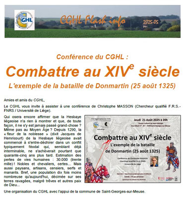 21 août 2025 : Conférence du CGHL : Combattre au XIVe siècle,
